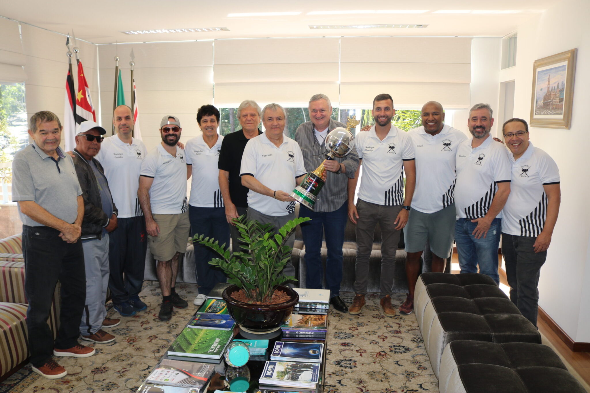 Nossa equipe de sinuca foi recebida, dia 3 de agosto, pelo presidente da AOPM, Cel PM Flammarion Ruiz; pelo presidente do Conselho Deliberativo, Cel PM