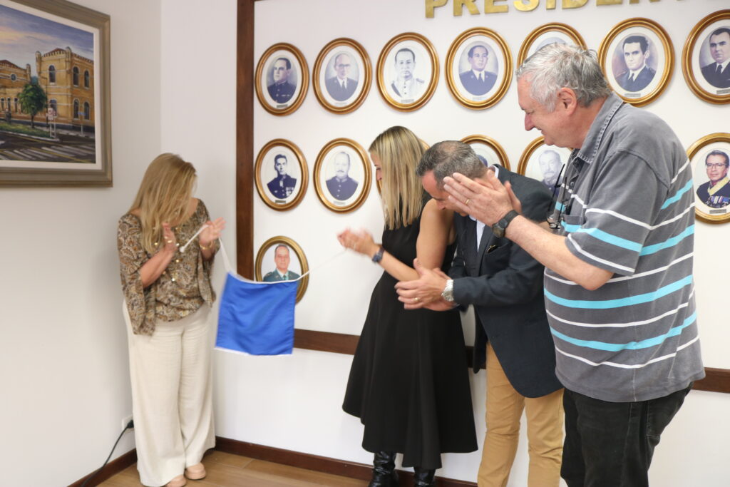 Durante a cerimônia, sua filha Viviane, sua esposa Sra. Meire Cristina Scomparim, seu irmão Cel PM Alexandre Marcos de Oliveira e o presidente da AOPM, Cel PM Flammarion Ruiz fizeram o descerramento da foto e prestaram emocionantes homenagens enaltecendo seu legado.
