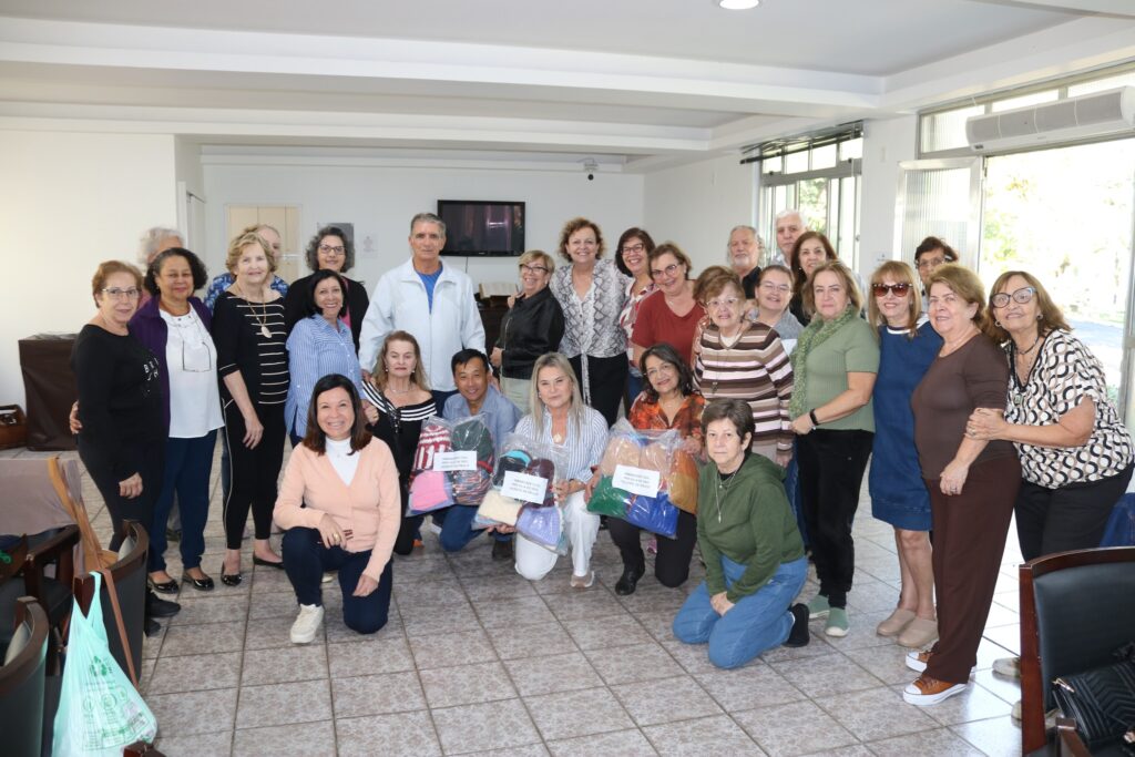 Na ocasião, foram doadas 80 peças de gorros, cuidadosamente confeccionadas pelas dedicadas Senhoras do Projeto Formiguinhas.