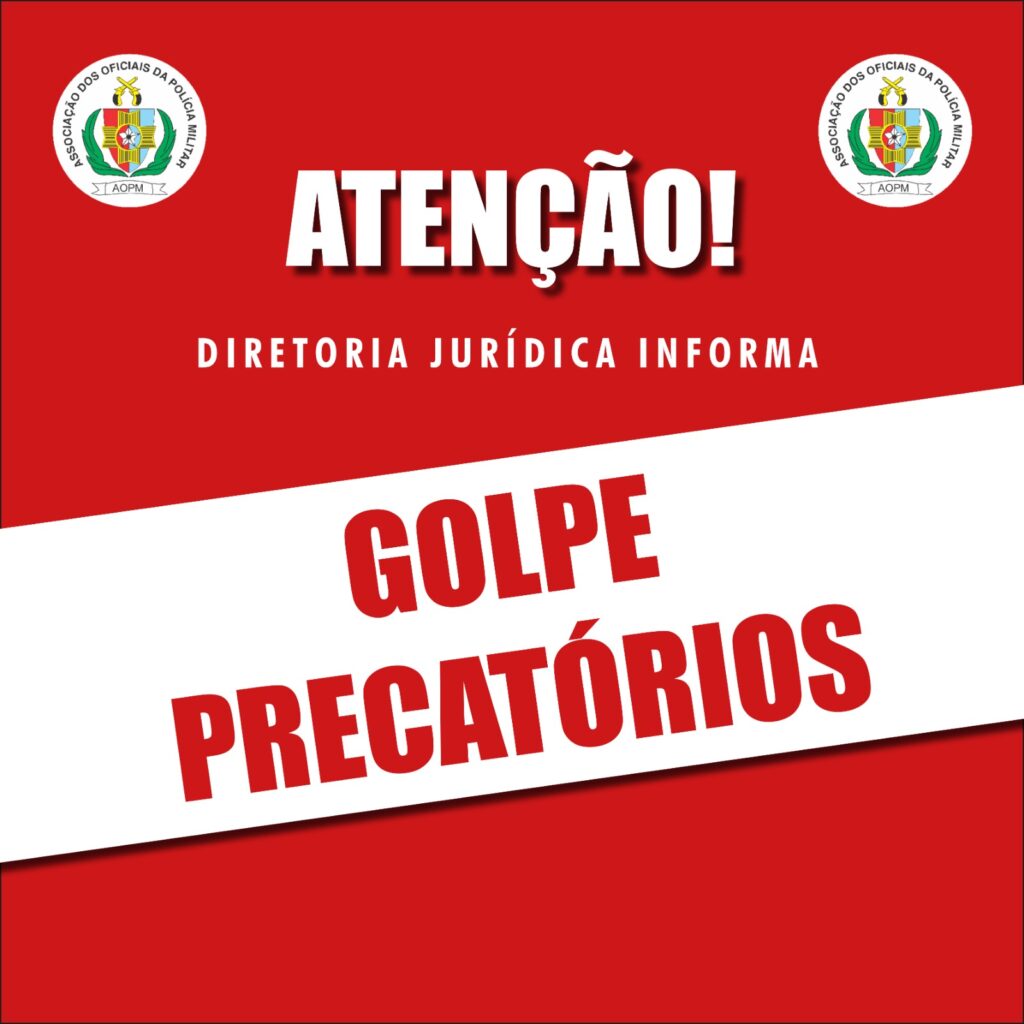 A Diretoria Jurídica da AOPM recebeu no último mês diversos contatos de associados informando que receberam ligações, correspondências e/ou mensagens do suposto escritório “Roveri Mendo Advogados Associados” informando que há um pagamento de precatório liberado para recebimento, requerendo pagamento de uma “taxa judiciária”.