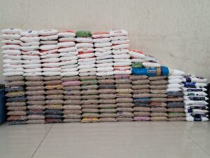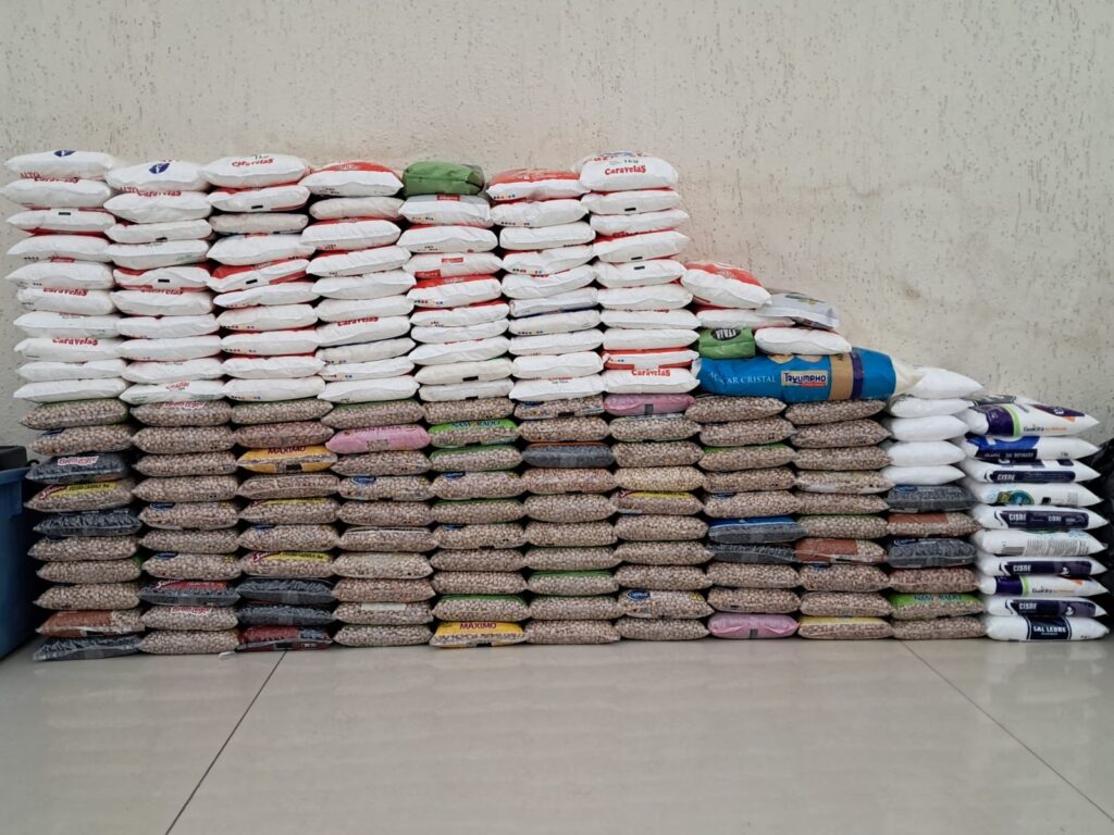 As doações foram divididas igualmente, sendo cerca de 100 kg para cada uma das seguintes entidades: