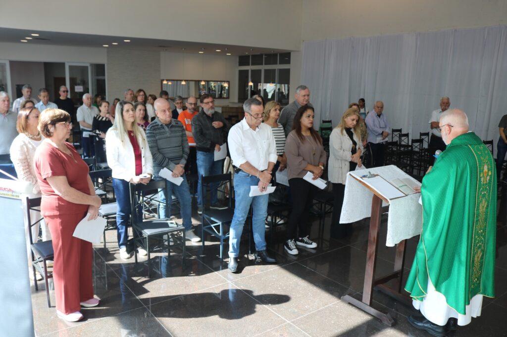 A missa aconteceu no hall do salão Barro Branco e contou com a presença de familiares e amigos, entre eles o presidente da AOPM, Cel PM Flammarion Ruiz; a assessora do departamento Feminino, Sra. Nilce Ruiz; a Sra. Meire Cristina Scomparim e o Cel PM Alexandre Marcos de Oliveira, respectivamente esposa e irmão do Cel PM Synesio, falecido em 01 de agosto de 2023.