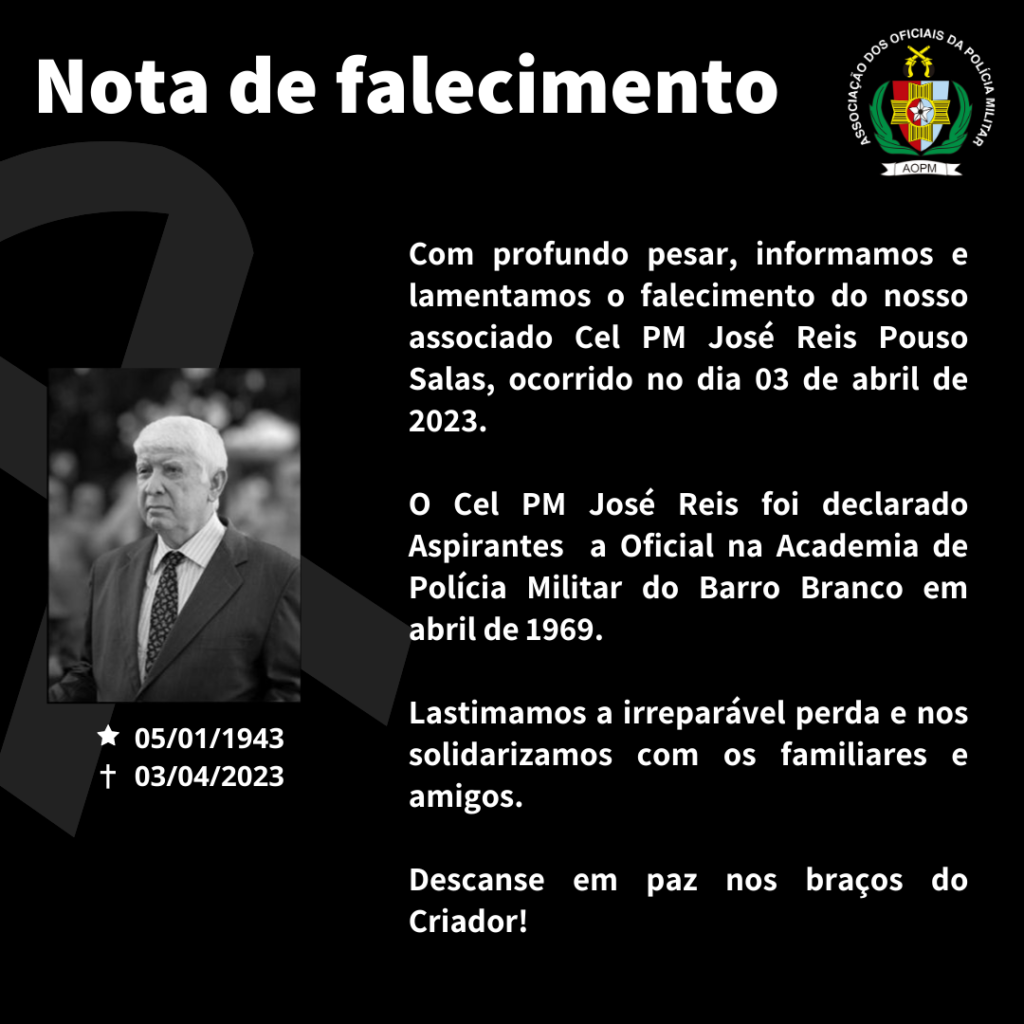 Nota de Falecimento Cel PM José Reis Pouso Salas